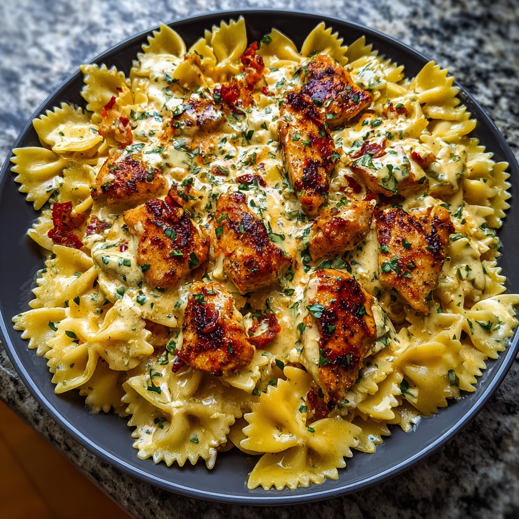 Garlic Butter Chicken Bowties with Mozzarella Cream Sauce