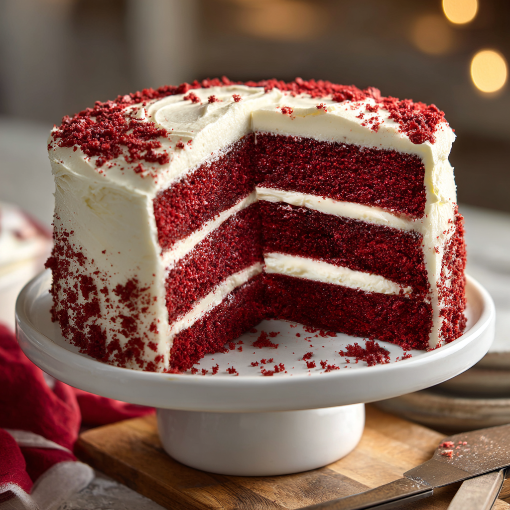 Perfect for birthdays, holidays, or any celebration, this cake balances subtle cocoa flavor with a hint of tang and sweetness, wrapped in a smooth layer of cream cheese frosting. It’s a showstopper that’s as delicious as it is beautiful!