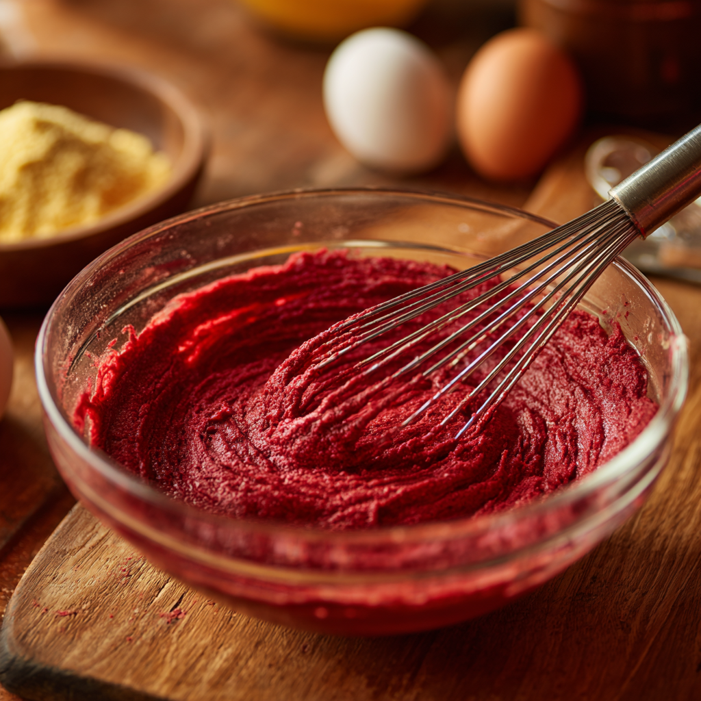 Gradually add the dry ingredients to the wet mixture, whisking gently until no lumps remain. Do not overmix — just combine until smooth and silky.
