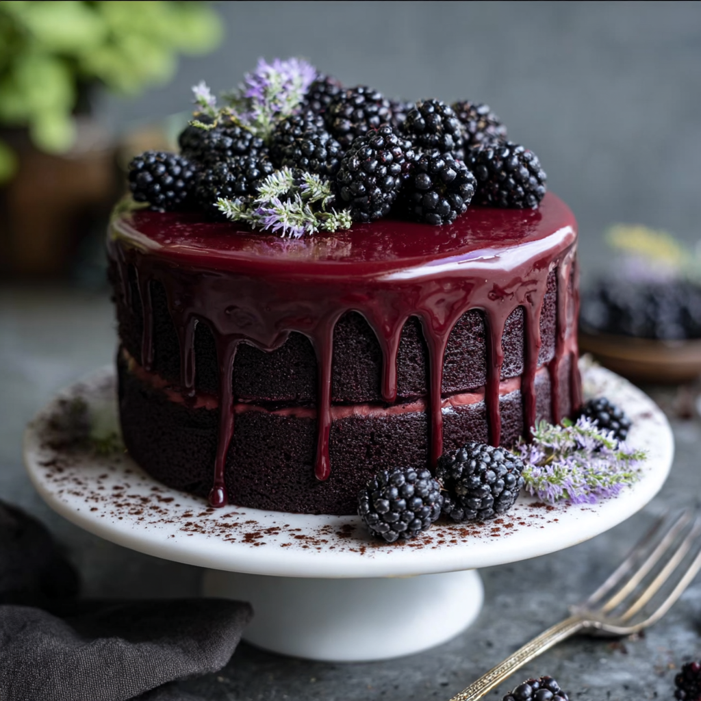 The Blackberry Velvet Gothic Cake is more than a dessert; it’s a mood. It defies the expectation that fruit cakes must be light and vanilla. By harnessing the power of black cocoa and concentrated fruit, you create a dessert that is visually striking and deeply flavorful.