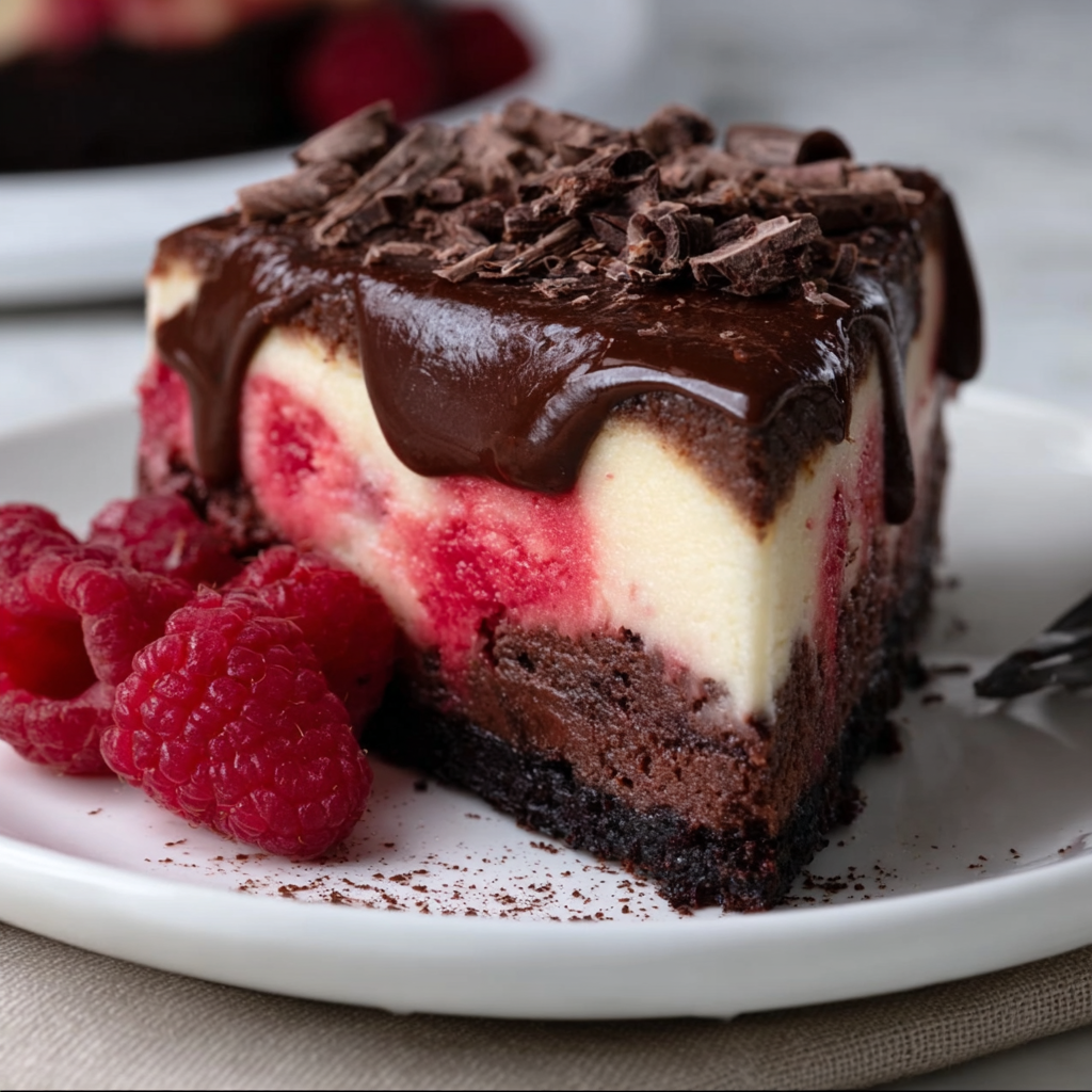 Dark Chocolate Raspberry Cheesecake (Rich, Fudgy, and Tart)