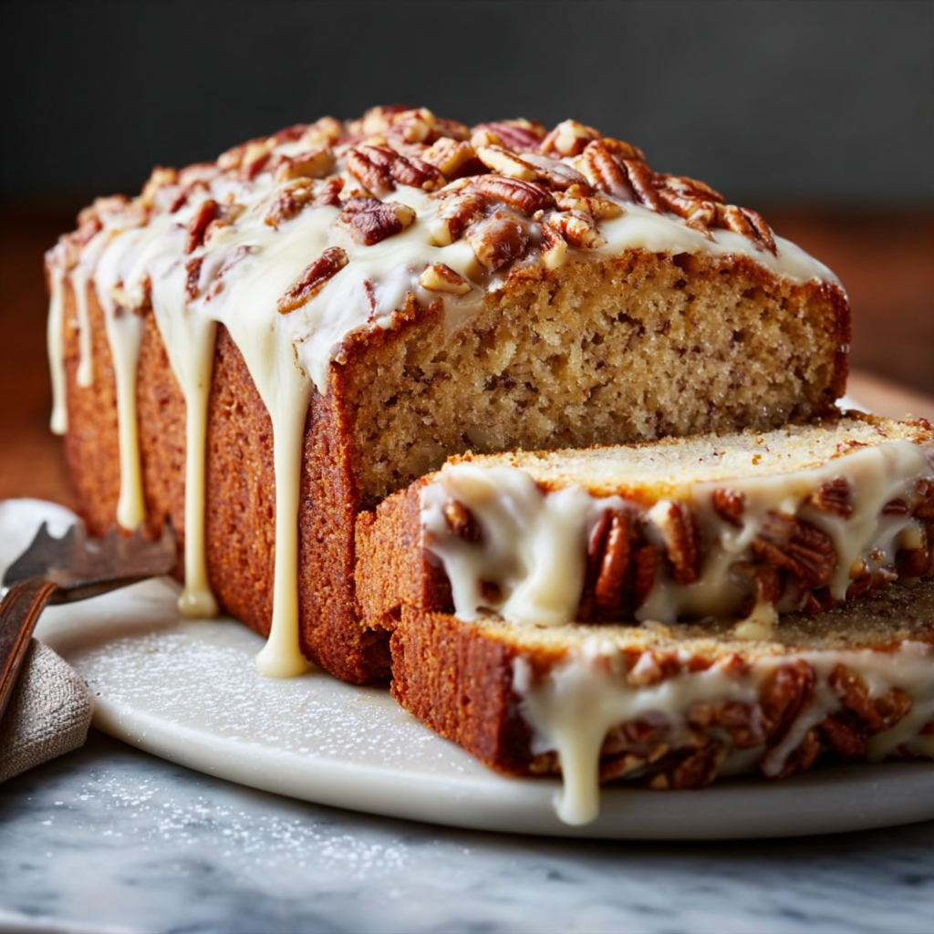 The Ultimate Butter Pecan Loaf with Cream Cheese Glaze