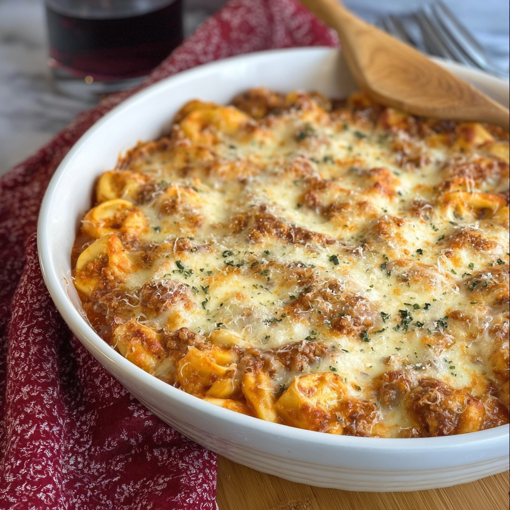 Home » Cheesy Baked Tortellini Casserole with Meat Sauce: The Science of High-Density Comfort