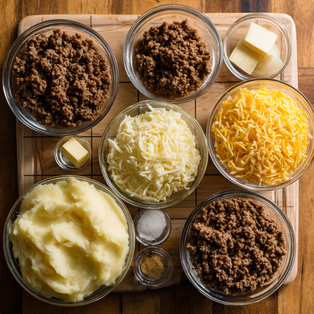 There are times when you crave a meal that is warm, deeply comforting, and full of home-cooked flavor — the kind that fills the kitchen with the smell of butter, gravy, and melted cheese. This Cheesy Mashed Potato & Beef Pie is one of those dishes. Imagine a rich, savory beef layer simmered in a flavorful gravy, topped with creamy mashed potatoes, and finished with a generous amount of melty, golden cheese. It’s simple, filling, and soul-satisfying.