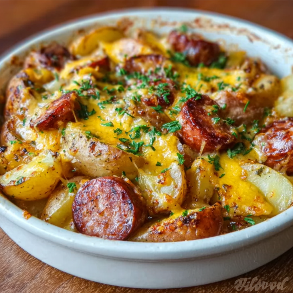 Cheesy Smoked Sausage and Potatoes is the ultimate evidence that simple ingredients, when treated with the right technique, create a world-class meal. It’s smoky, salty, and incredibly satisfying.