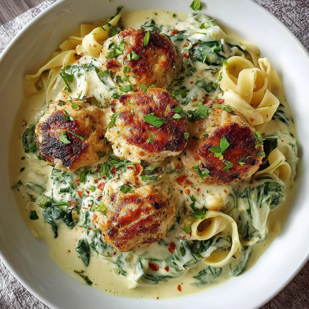 NLP Keywords: chicken ricotta meatballs, creamy spinach Alfredo sauce, baked chicken meatballs, Italian chicken meatballs recipe, chicken Alfredo meatballs, spinach Alfredo pasta sauce.