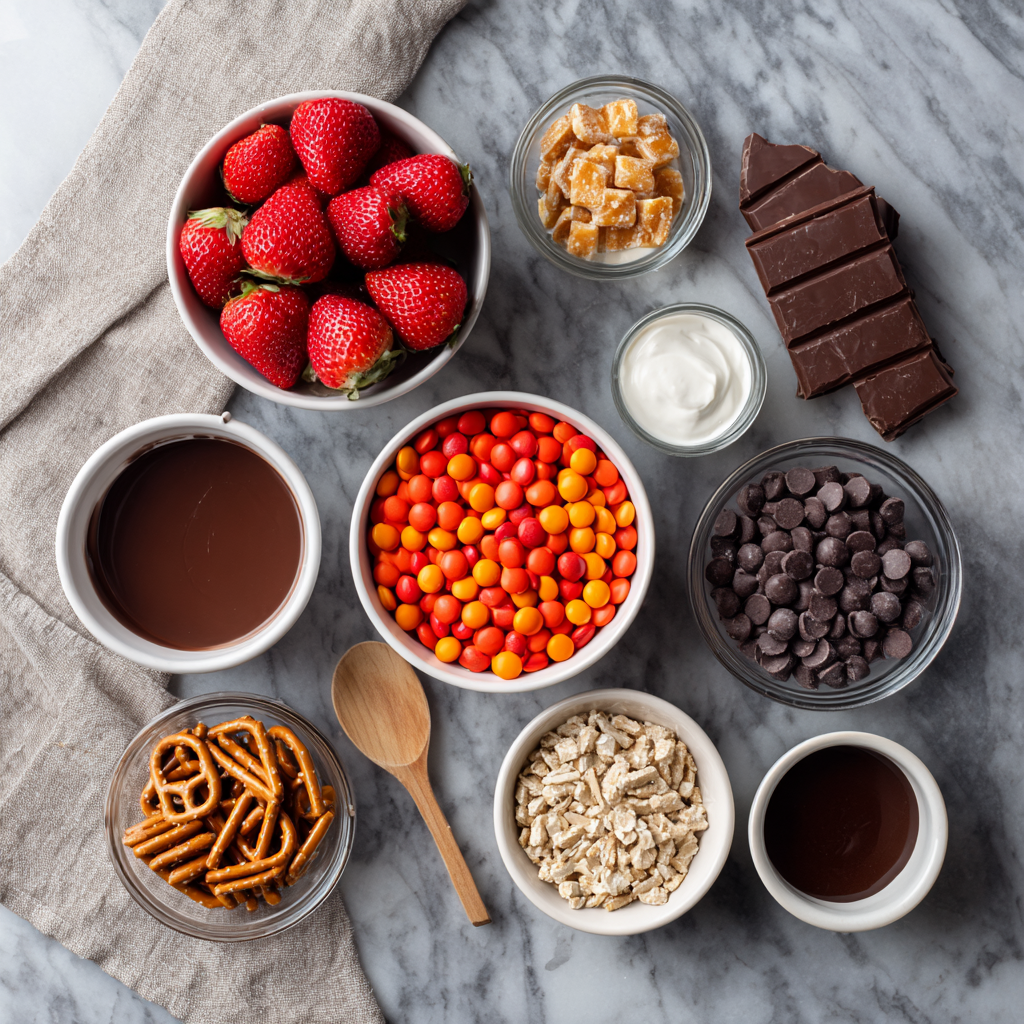 To assemble these edible birds, we need ingredients that provide structural integrity and flavor contrast. Here is your curated shopping list for Chocolate Covered Strawberry Turkeys.