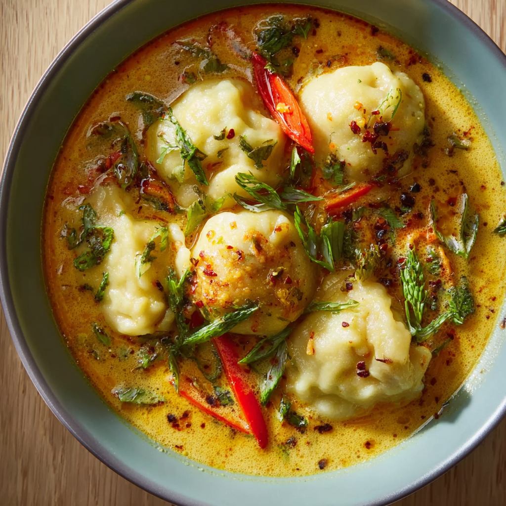 - Low-Calorie / Light: Use “Light” coconut milk to reduce calories by roughly 40%. However, the broth will be thinner. To compensate, smash 2-3 cooked dumplings into the broth to thicken it with their starch.