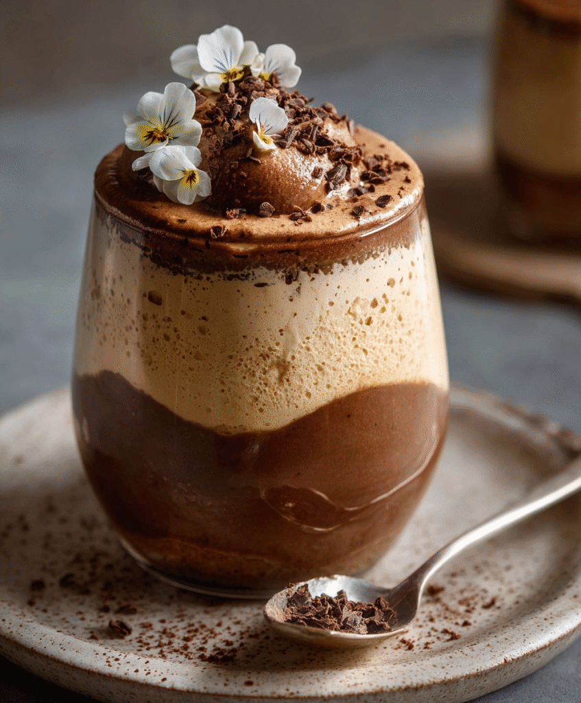 • Texture Crunch: Top with chocolate-covered coffee beans or crushed cacao nibs. The crunch contrasts beautifully with the soft mousse.