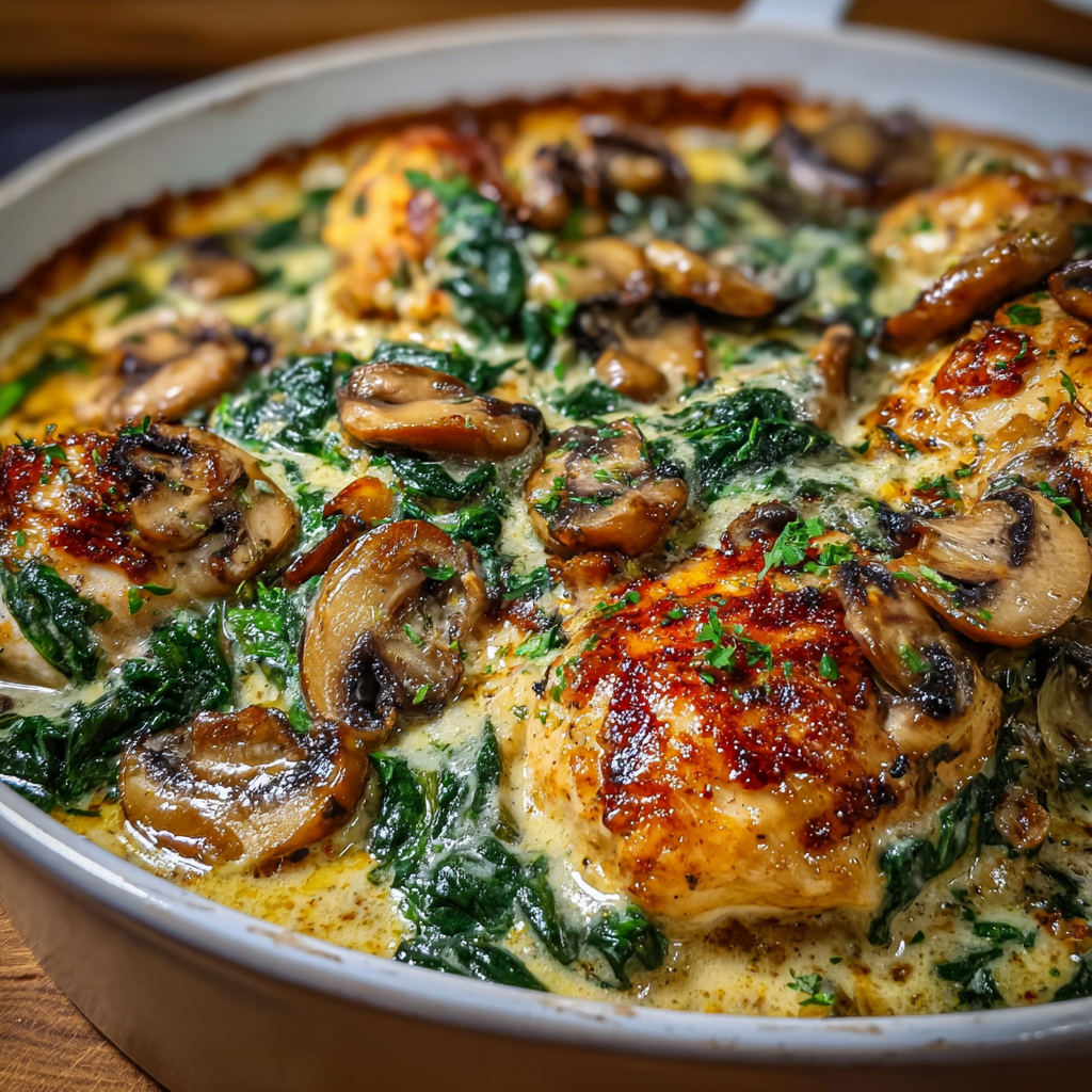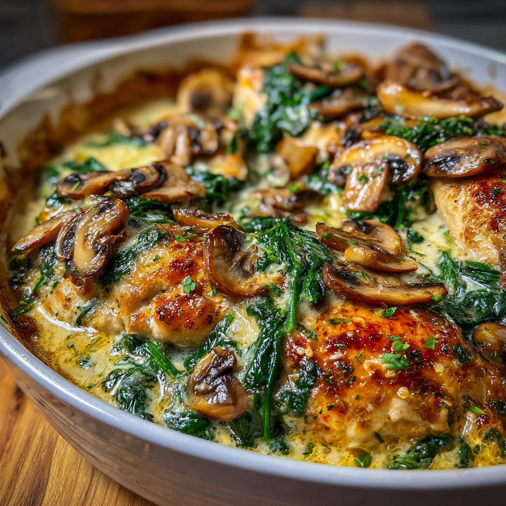 • Creamy Chicken Spinach and Mushroom Oven Dish: Rich, Comforting & Easy One-Pan Dinner
