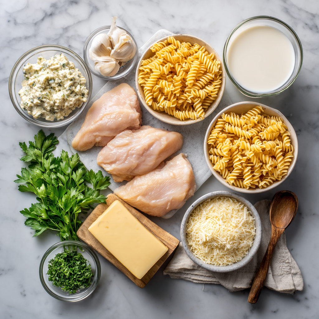 To achieve a sauce that is rich, stable, and deeply flavorful, we avoid shortcuts like “Alfredo in a jar.” Here is your curated shopping list for Creamy Garlic Parmesan Chicken with Cheesy Twisted Pasta.