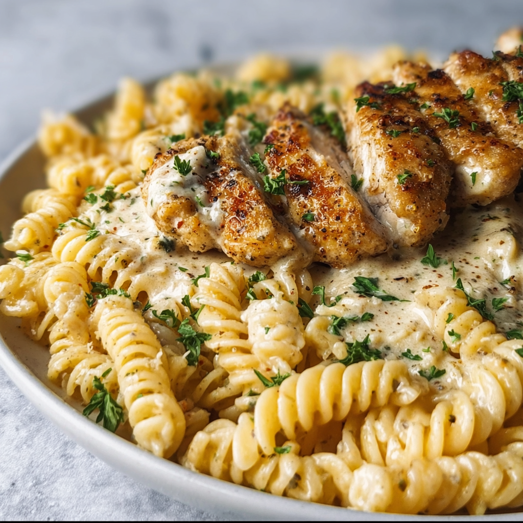 Creamy Garlic Parmesan Chicken with Cheesy Twisted Pasta: The Ultimate Comfort Bowl