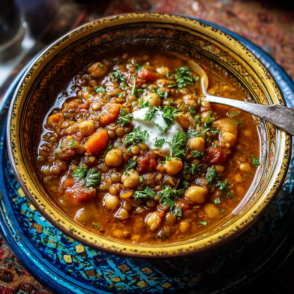 This aromatic, spice-infused soup combines earthy lentils, tender chickpeas, warm Moroccan spices, and slow-simmered vegetables into a deeply satisfying, nourishing meal. The crockpot does the heavy lifting, allowing flavors like cumin, coriander, turmeric, cinnamon, and paprika to meld beautifully over hours.