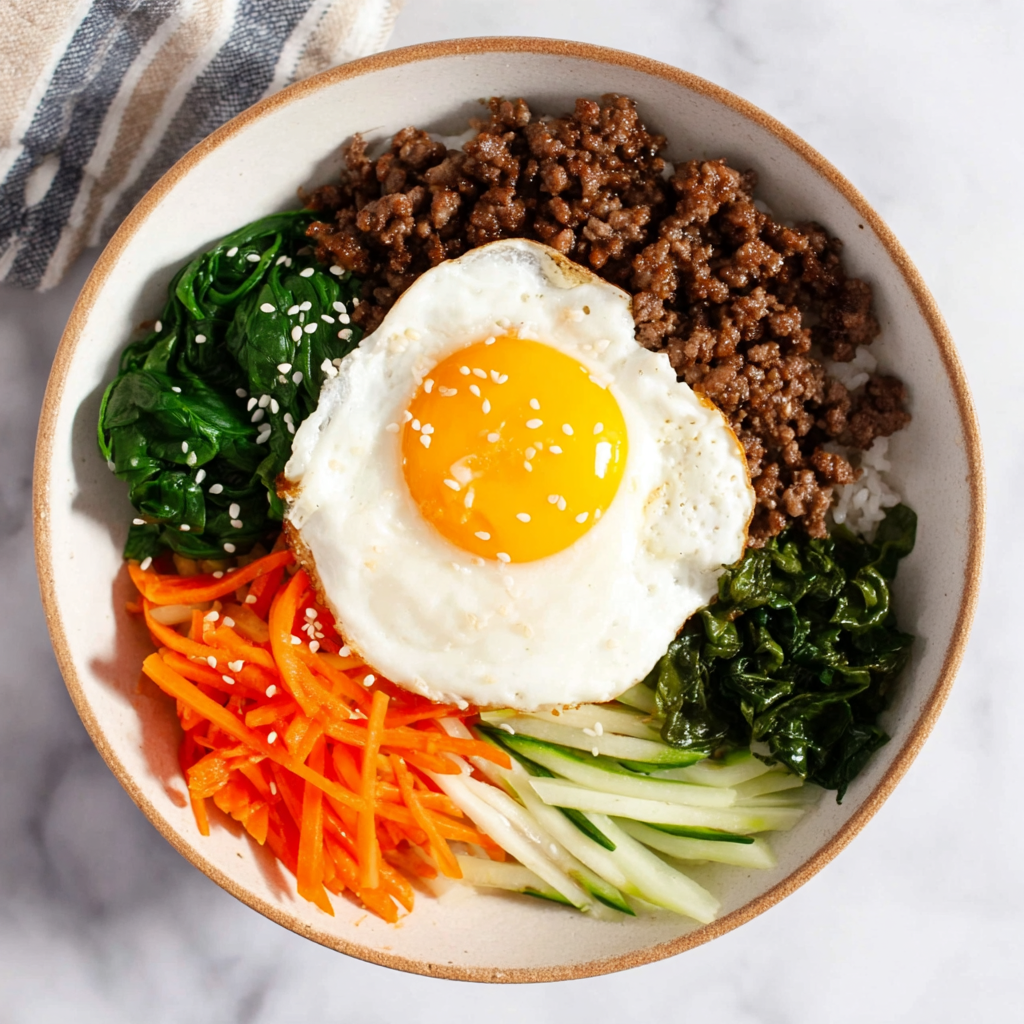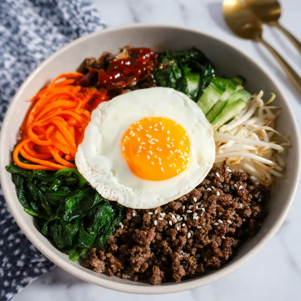 Easy Bibimbap with Ground Beef is a masterclass in nutritional balance and thermal contrast. By simplifying the prep but keeping the Obangsaek color philosophy, you create a 30-minute meal that is both a visual and biological powerhouse.