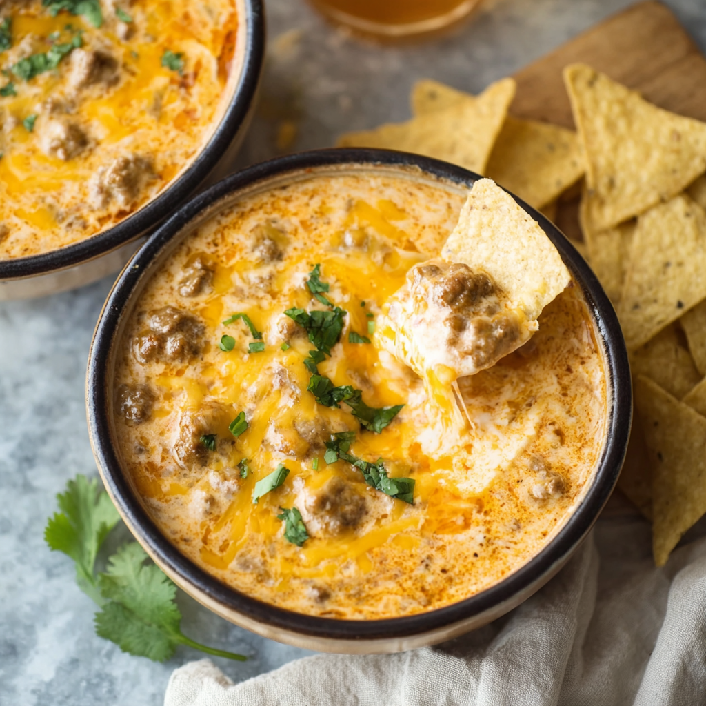 This recipe for Easy Crock Pot Sausage Cheese Dip is the definition of “low effort, high reward.” It is a dump-and-go recipe that creates a creamy, spicy, meaty sauce that coats chips perfectly without breaking them. Unlike fancy fondues that require roux and temperature control, this dip relies on the foolproof melting properties of processed cheese (Velveeta) combined with the savory punch of breakfast sausage and the heat of diced tomatoes with green chilies. It is addictive, nostalgic, and guaranteed to be the first bowl emptied at any party.