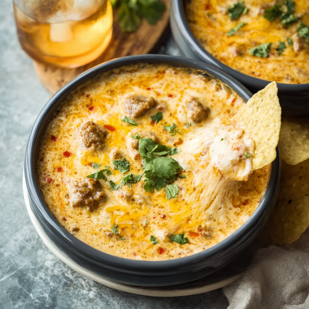 Easy Crock Pot Sausage Cheese Dip is the undisputed champion of party appetizers. It requires zero culinary skill but delivers maximum flavor impact. The combination of spicy sausage, creamy cheese, and tangy tomatoes hits every pleasure center in the brain, ensuring that your crock pot will be wiped clean before halftime.
