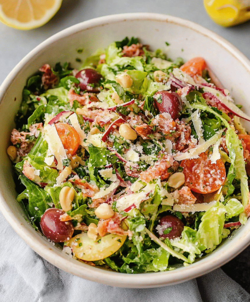 Made with finely chopped lettuce, salami, mozzarella, and garbanzo beans (chickpeas), it’s hearty enough for lunch yet light enough for everyday eating. 🥬💫