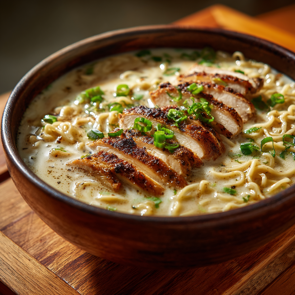 Why are creamy ramen dishes so deeply comforting? Flavor science shows that creaminess + spice stimulates both warmth and satisfaction responses in the brain, creating a craving-level meal experience. Fiery Chicken Ramen with Creamy Garlic Sauce delivers exactly that — a bowl that is rich, spicy, silky, savory, deeply seasoned, and irresistibly cozy.