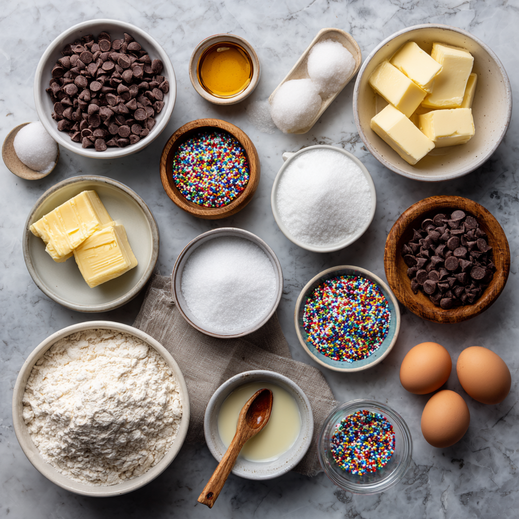 • Funfetti Cake: Swap chocolate chips for white chocolate chips and add ¼ cup rainbow sprinkles to the dough.