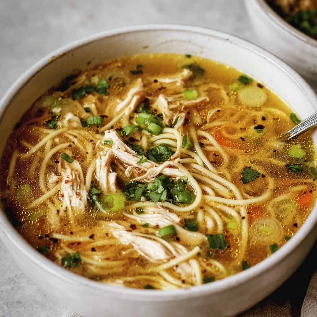 - Refrigeration: The soup base (chicken + veg + broth) lasts 4–5 days in the fridge.