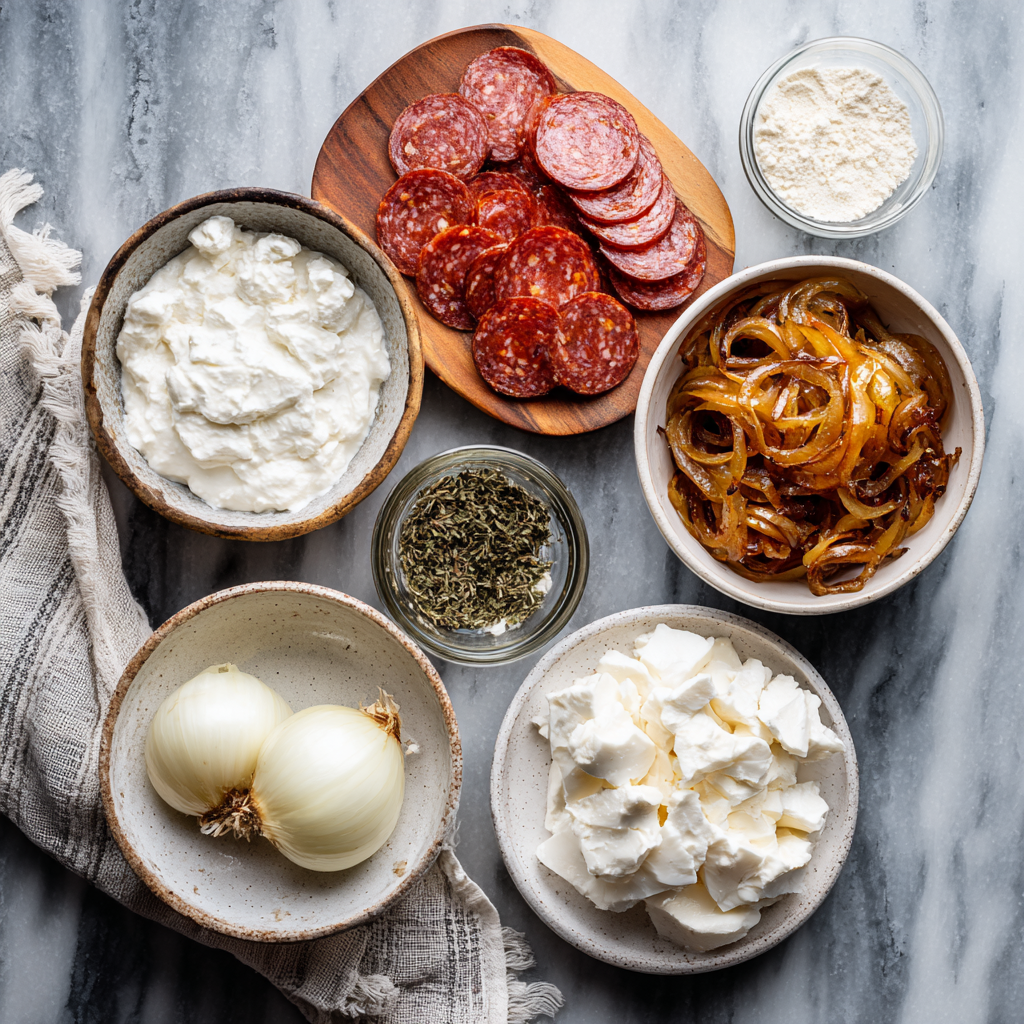 • 15-20 Slices Pepperoni: The fat renders out to season the onions.