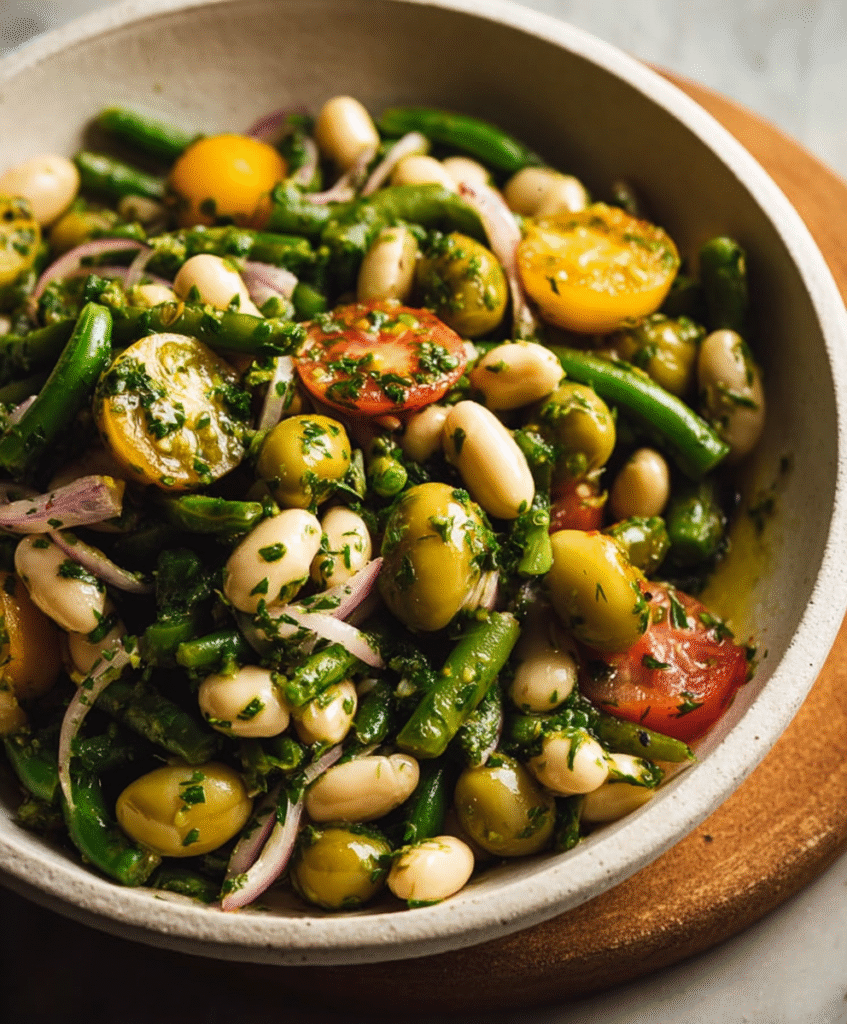 This Green Olive Bean Salad is refreshing, protein-packed, and bursting with Mediterranean flavor. Perfect as a side, main dish, or meal prep — simple, wholesome, and so satisfying.