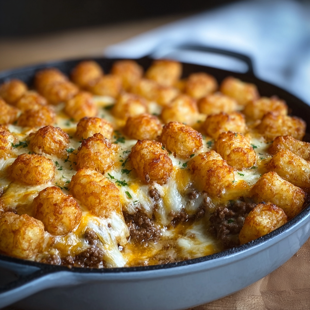 Did you know that the “Tater Tot” was originally invented in 1953 as a way to utilize leftover potato slivers from French fry production? Since then, it has evolved from a simple side dish into the structural foundation of the “Hotdish”—a culinary staple of the American Midwest. According to consumer food data, the Ground Beef Tater Tot Casserole (often referred to in French as Gratin de Tater Tots au Bœuf Haché) remains one of the most popular family dinners because it perfectly balances the three pillars of comfort food: crispy starch, savory protein, and molten dairy.