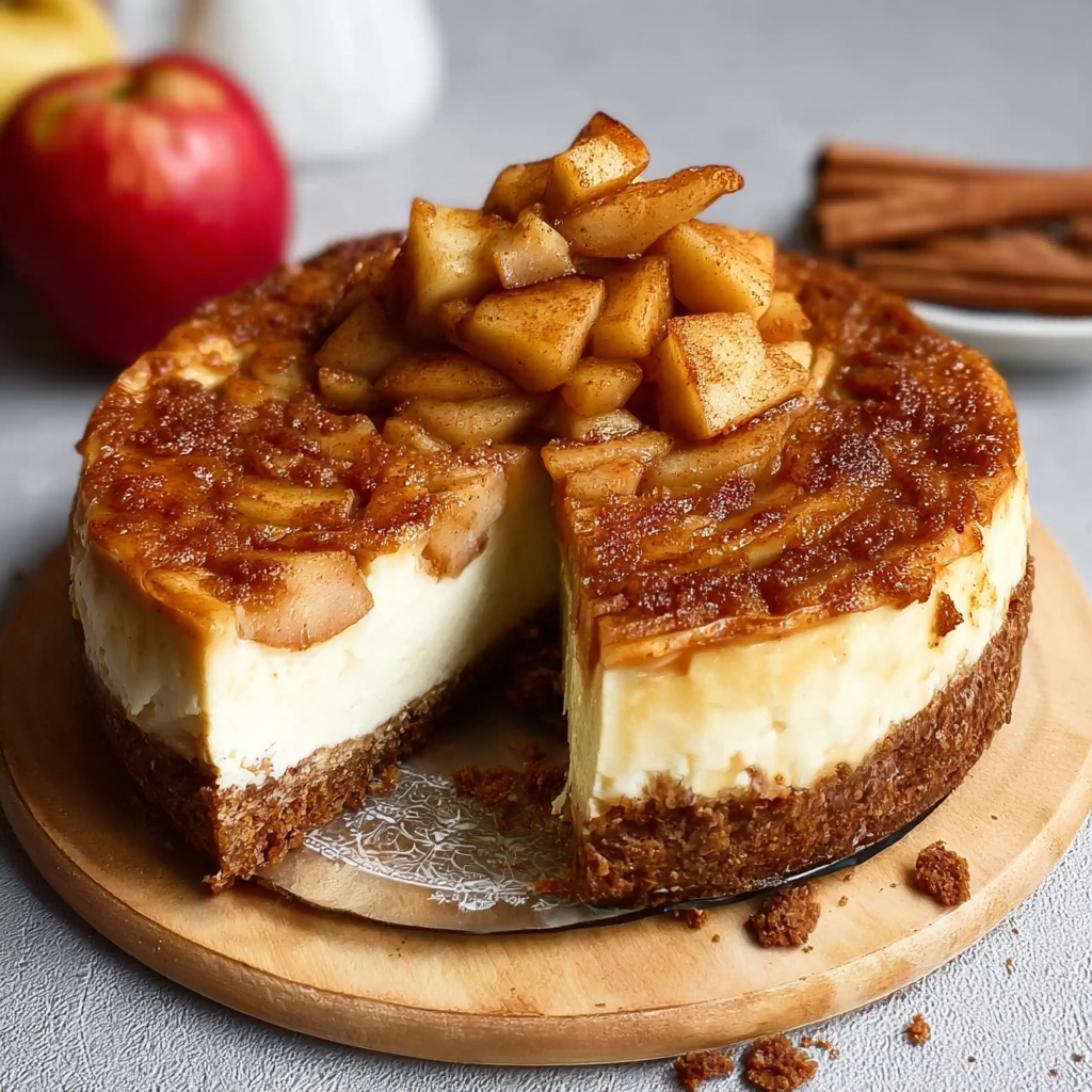 While the cheesecake cools, sauté diced apples, lemon juice, and cinnamon in a pan until soft and caramelized. Actionable Tip: Allow the apples to cool completely before placing them on the fully cooled cheesecake.