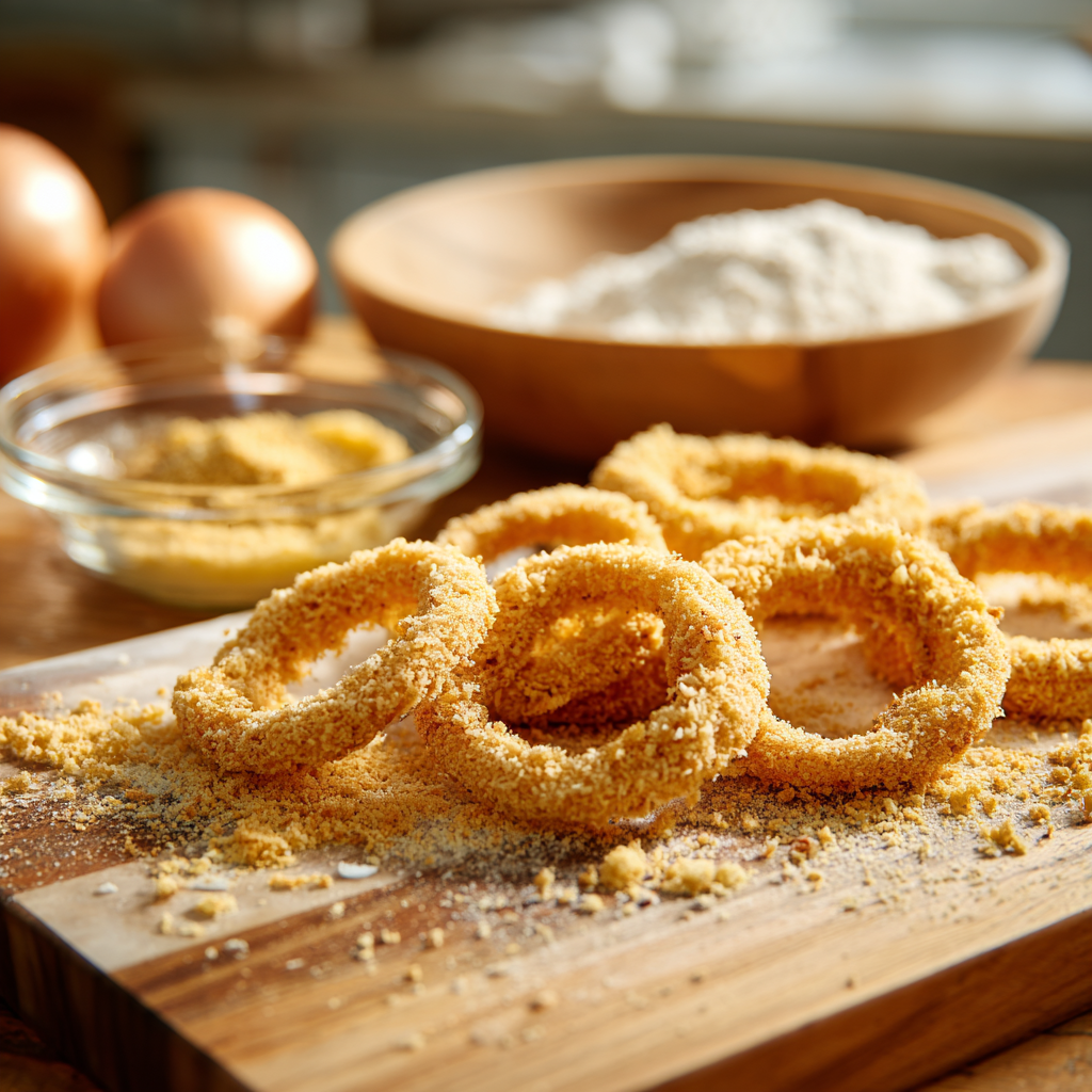 There’s nothing like a batch of fresh, golden, crispy onion rings — especially when they’re made at home. Many onion rings end up heavy, greasy, or with the coating sliding right off… but not these. This recipe gives you light, ultra-crispy breading that perfectly clings to the sweet onion slices, creating the ideal crunch with every bite.