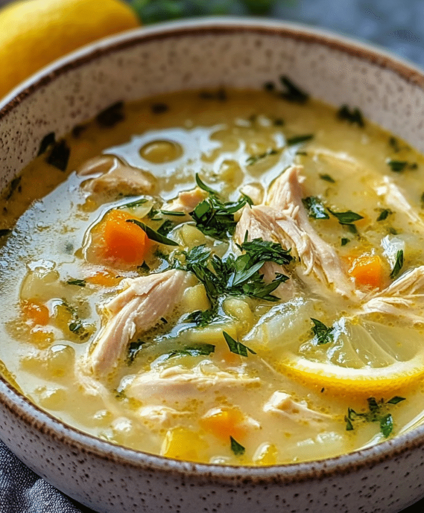 This Mediterranean Lemon Chicken Soup (often inspired by the Greek Avgolemono) is a bright, comforting, and deeply satisfying dish. It combines tender shredded chicken, tender rice or orzo, and a simple but elegant broth, finished with a generous amount of fresh lemon juice and sometimes tempered egg yolks to create a rich, tangy, and subtly creamy texture.