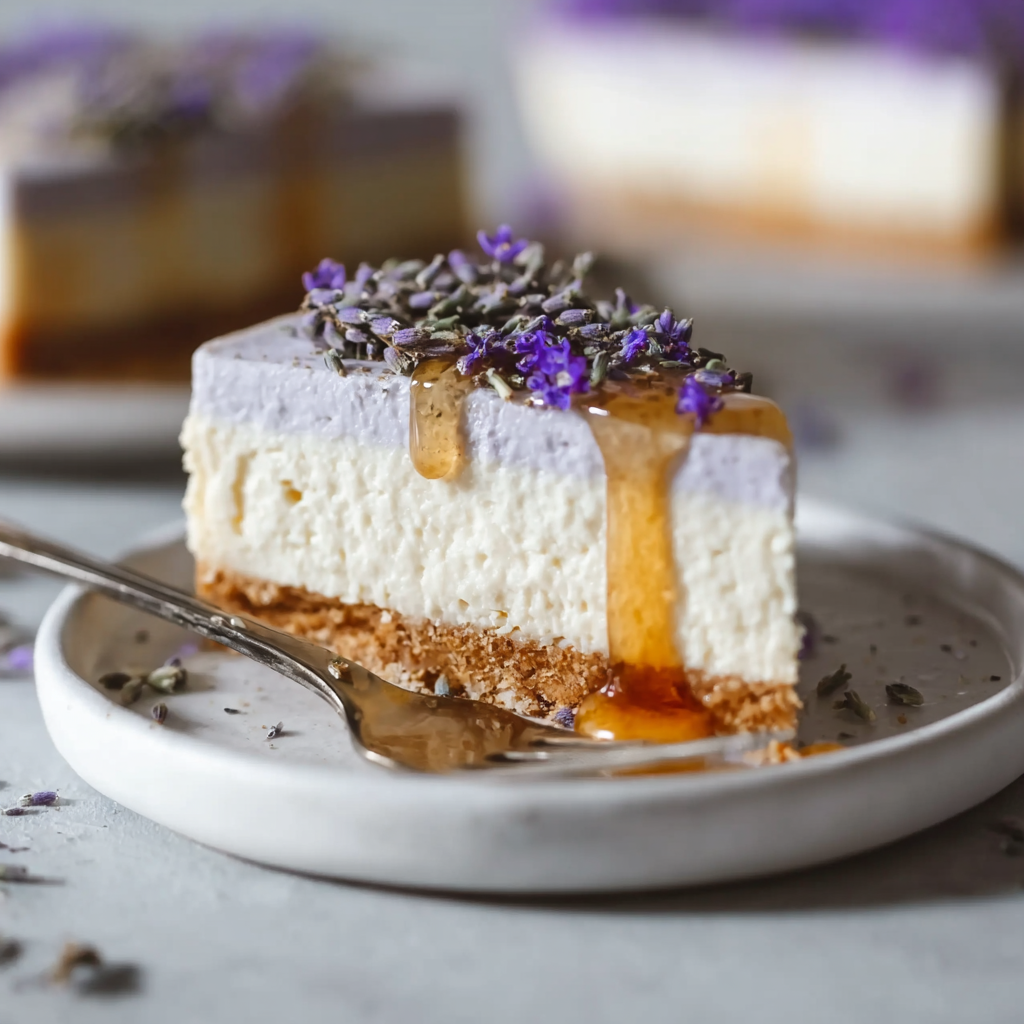 Summary: A chilled cheesecake with a graham cracker crust and a creamy filling sweetened with lavender-infused honey.