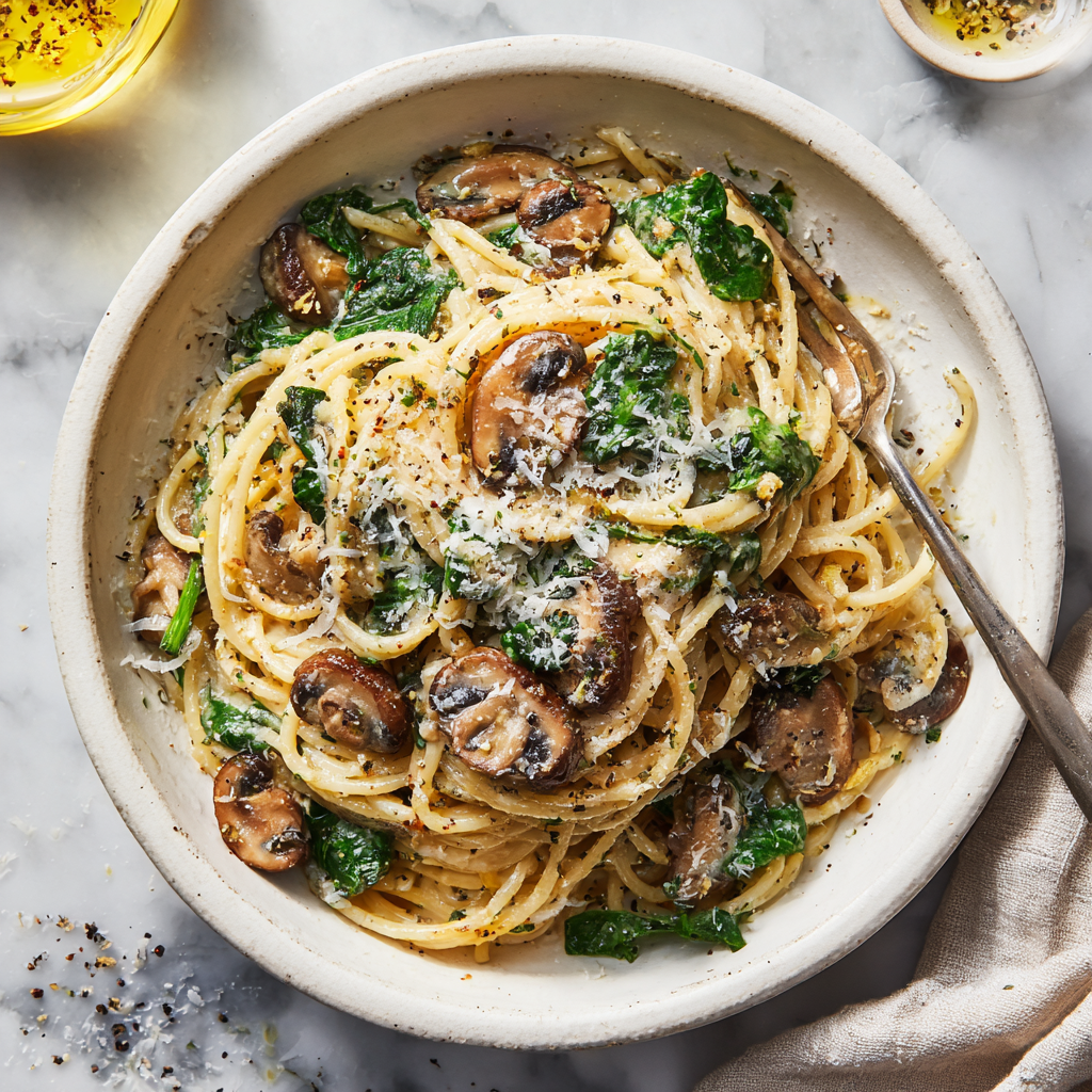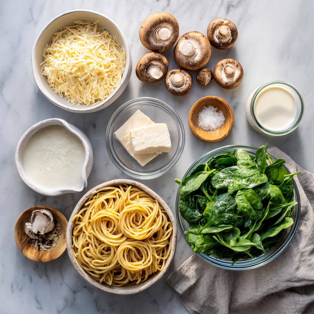 Note: Spinach is a powerhouse of Vitamin K and A, while mushrooms provide Selenium and B vitamins, making this a nutrient-dense pasta option compared to a plain Alfredo.
