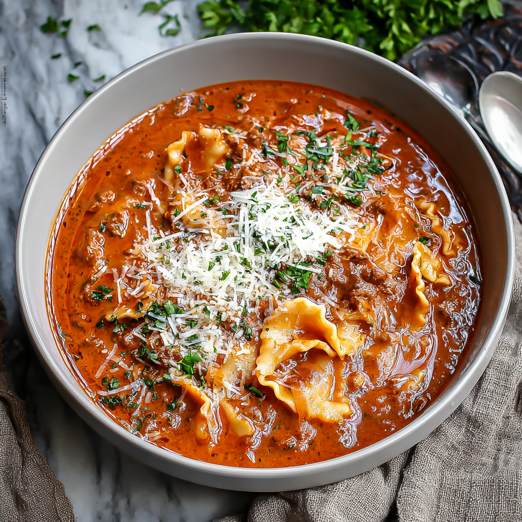 One Pot Lasagna Soup debunks the myth that comfort food requires hours of labor. By extracting the core flavors of lasagna—the fennel-spiced meat, the tart tomatoes, and the creamy ricotta—and delivering them in a slurpable format, you create a weeknight dinner that feels like a Sunday feast.