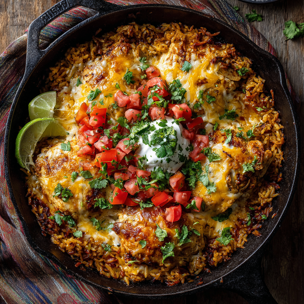 This One Skillet Cheesy Cuban Chicken Rice Bake challenges the idea that rice casseroles are bland or heavy. By layering garlic, cumin, oregano, lime juice, and colorful vegetables, you create a vibrant base that pairs perfectly with melted cheese.