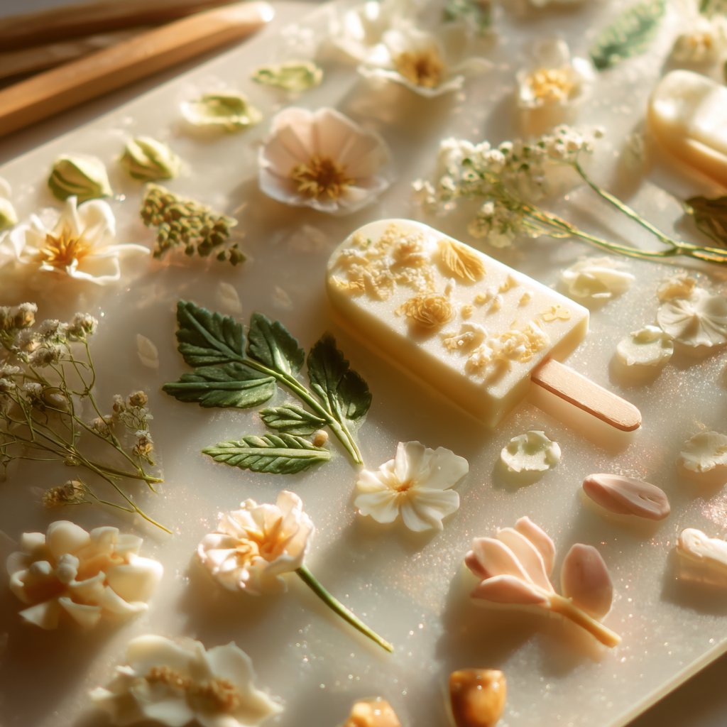 - Place a few tiny edible petals or micro-flowers in the mold.