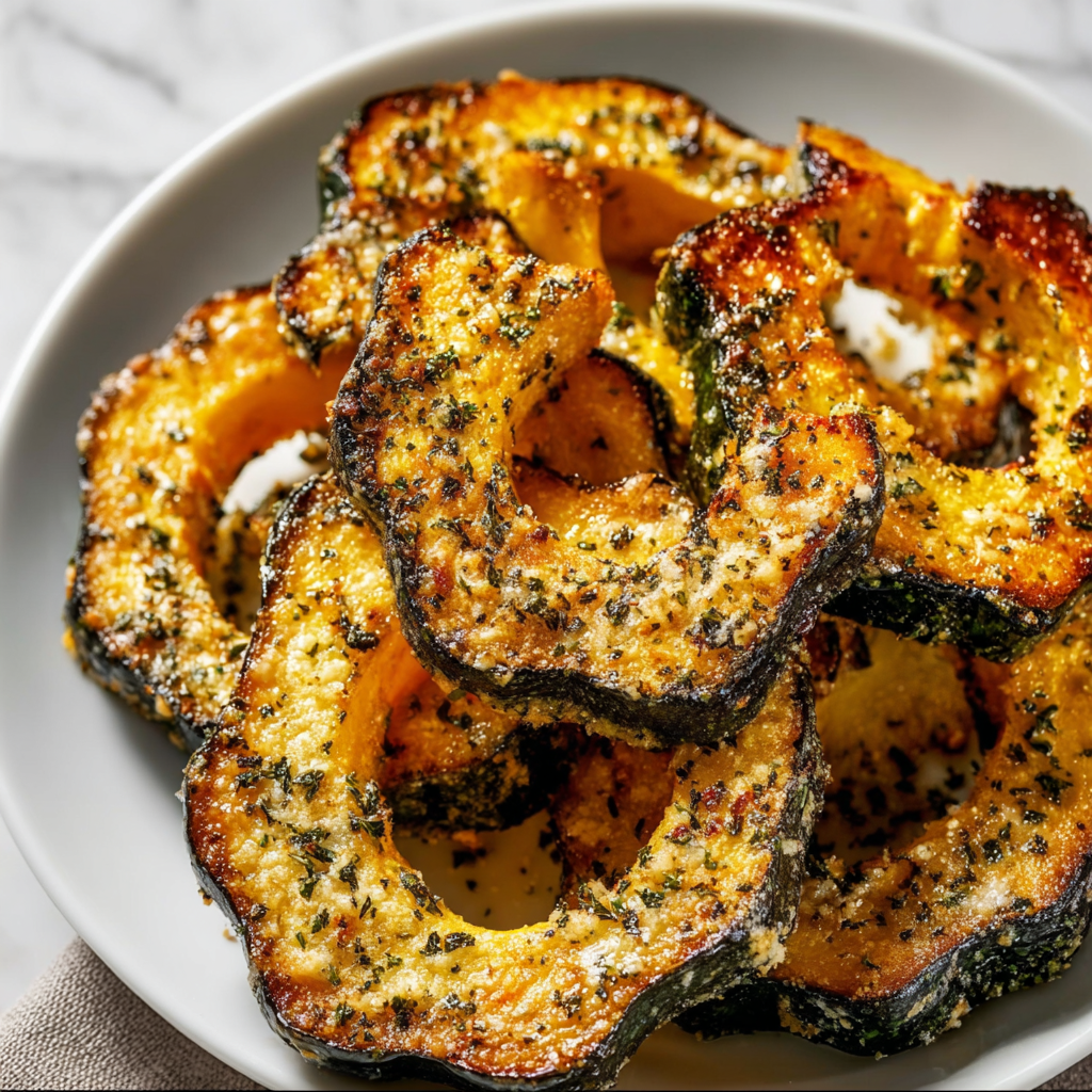 Summary: Savory, oven-roasted acorn squash slices seasoned with fresh thyme, rosemary, and salty Parmesan cheese. A nutrient-dense, edible-skin side dish ready in 45 minutes.