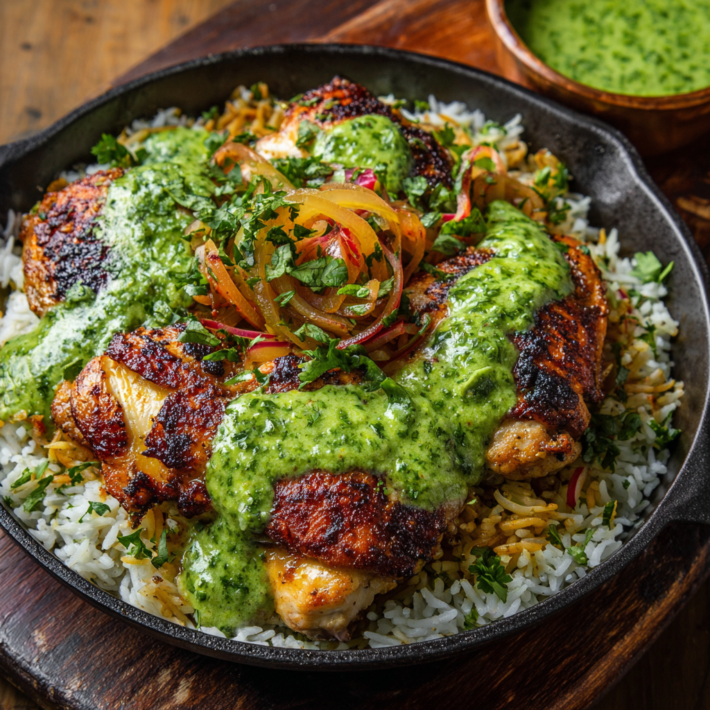 The magic of Peruvian Chicken and Rice with Green Sauce comes from fresh herbs and layered seasoning.