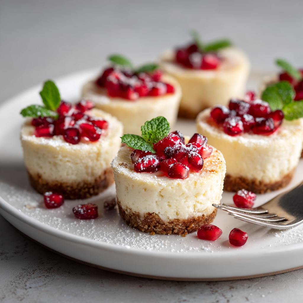 Pomegranate Cheesecake Minis are the perfect fusion of creamy and crunchy, sweet and tart. They offer all the decadence of a NY-style cheesecake without the hassle or the heavy feeling after a big meal. Plus, their jeweled appearance makes them the undisputed star of any dessert spread.