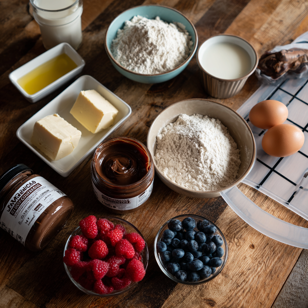 - Fill with Nutella, sliced strawberries, and whipped cream 🍓