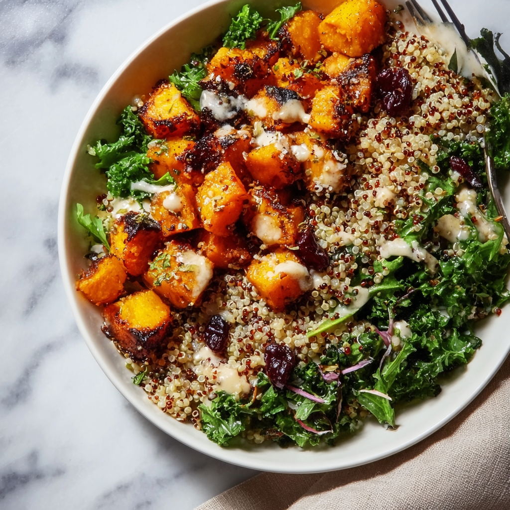 The Roasted Butternut Squash & Quinoa Harvest Bowl captures the essence of healthy comfort food. It proves that a salad doesn’t have to be cold lettuce and sad tomatoes. By combining roasted root vegetables with hardy grains and a luxurious dressing, you create a meal that feels like a treat but fuels your body like a machine.