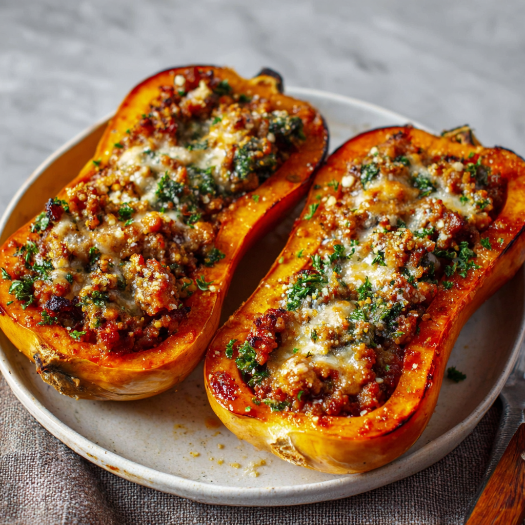 Sausage Stuffed Butternut Squash is the quintessential autumn and winter comfort food. It takes the natural sweetness of roasted squash and pairs it with the savory, salty punch of Italian sausage and earthy herbs.