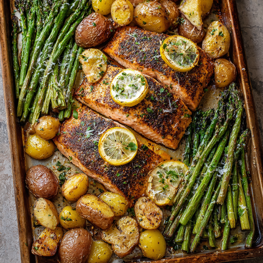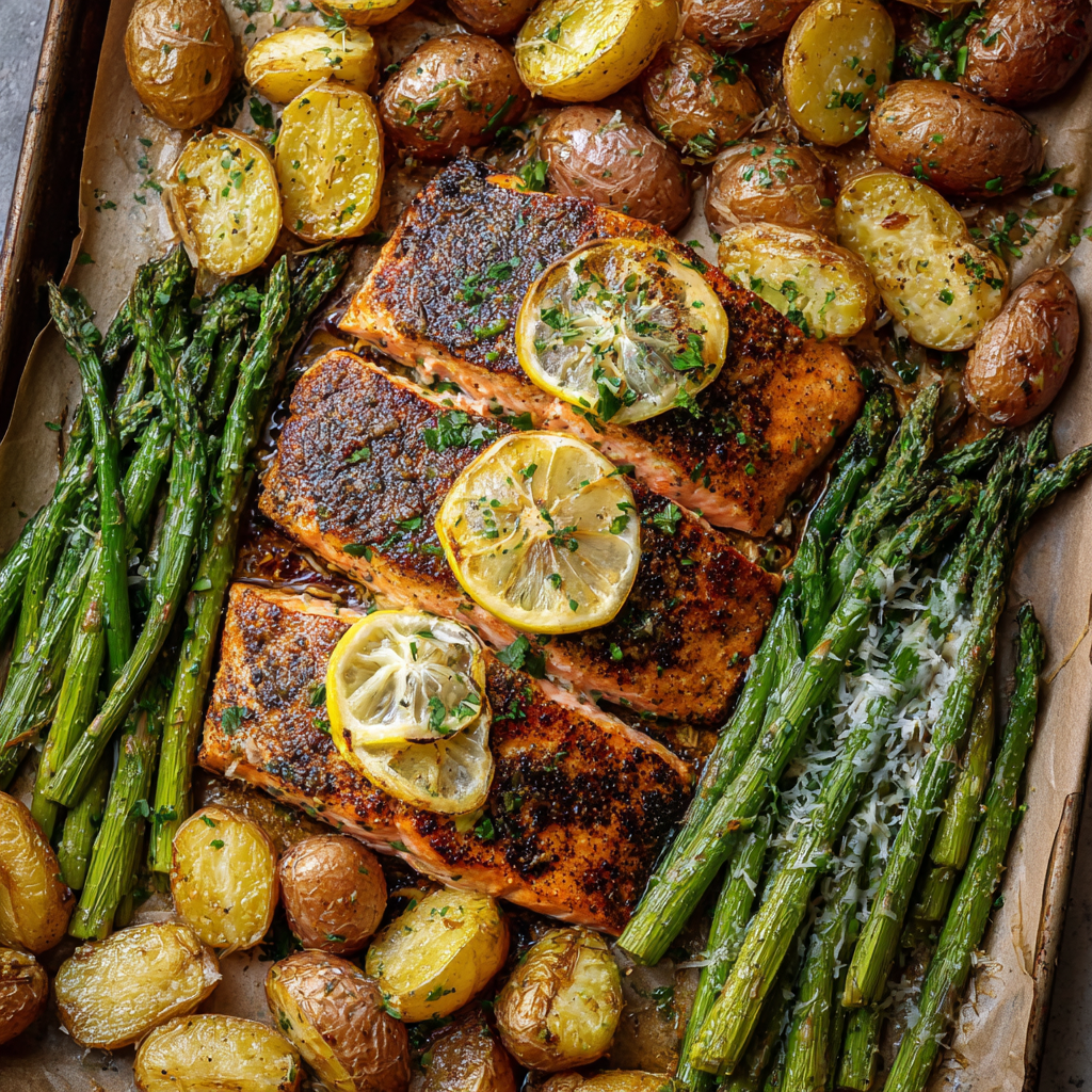 This recipe pairs tender roasted salmon with crispy baby potatoes and savory Parmesan asparagus, finished with a silky lemon brown butter sauce. It’s balanced, nutrient-dense, and elegant enough for guests while being simple enough for busy weeknights.