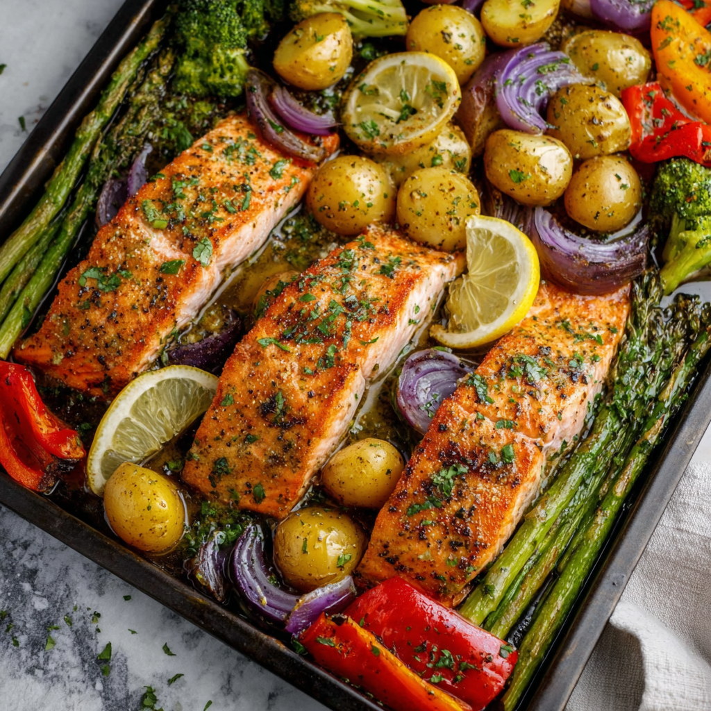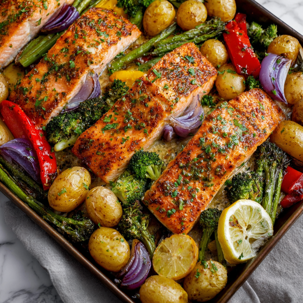 Home » Sheet Pan Salmon and Potatoes with Veggies: The Perfect Weeknight Balance