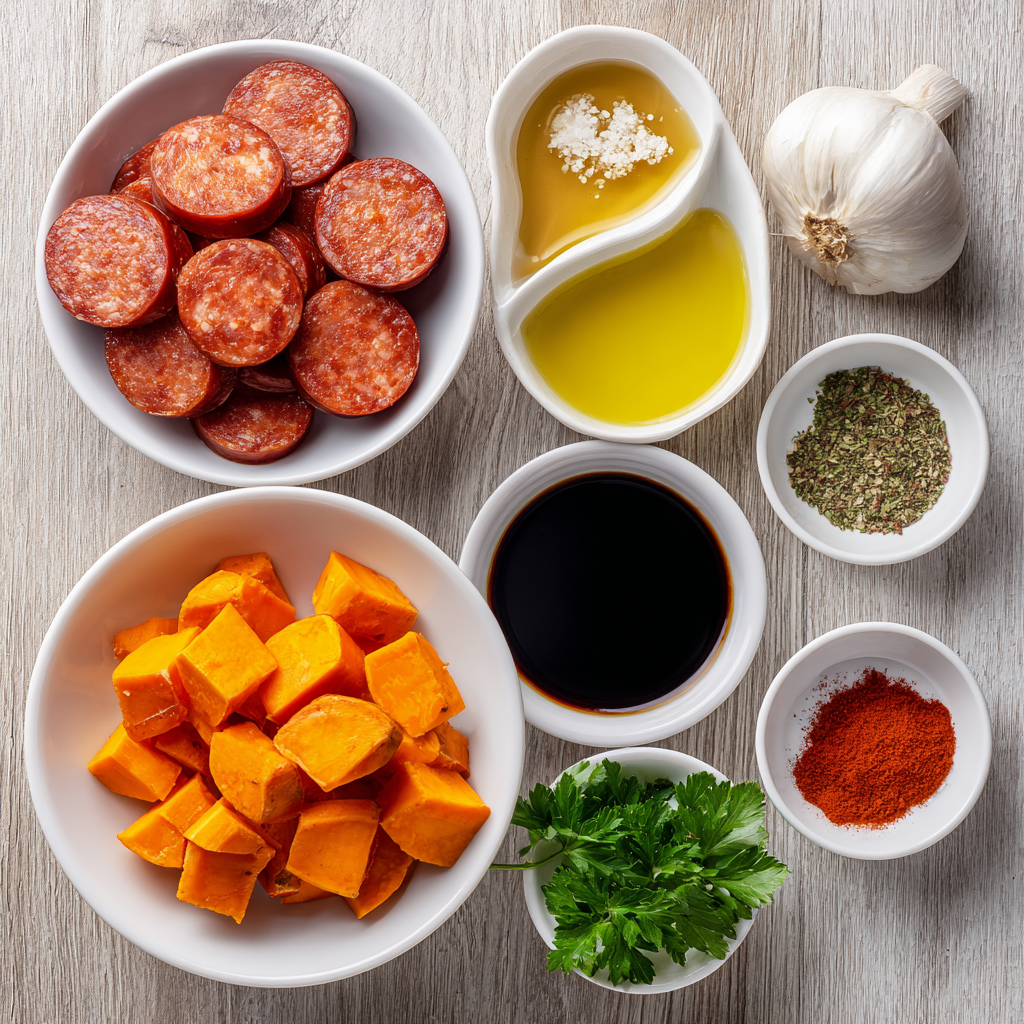 This recipe for Sheet Pan Sausage and Sweet Potatoes with Honey Garlic Sauce is a masterclass in efficiency and flavor balance. It leverages the high heat of roasting to caramelize the natural sugars in the sweet potatoes and the Maillard reaction on the smoked sausage. The unifying element is a sticky, savory Honey Garlic Glaze that coats every bite. It is a complete meal—protein, complex carbs, and fiber—cooked on a single tray in under 30 minutes. Whether you are meal prepping for the week or feeding a hungry family on a Tuesday, this dish delivers maximum flavor with minimal cleanup.
