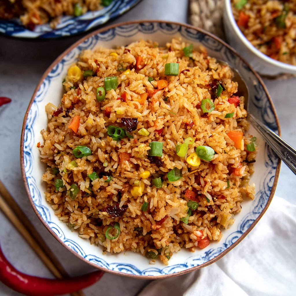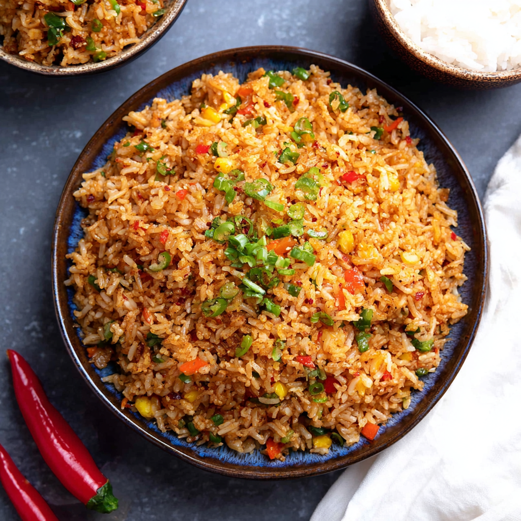 Spicy Chilli Garlic Fried Rice is a masterclass in aromatic layering. By utilizing the science of starch retrogradation and the high-heat Maillard reaction, you transform simple leftovers into a high-energy, restaurant-quality meal.