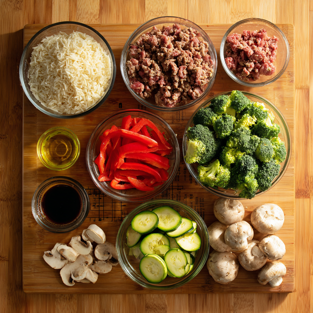 This dish combines juicy, spicy ground beef, crisp-tender garlic vegetables, and fluffy rice — all tossed in a bold, savory-sweet sauce that hits every flavor note. It’s comforting, satisfying, and ready in under 30 minutes. Inspired by Asian street food, this bowl is all about balance: spicy heat, umami depth, and fresh crunch.