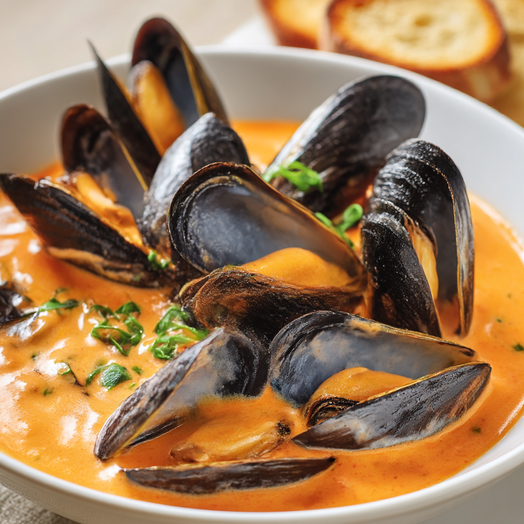 Steamed Mussels in Tomato Cream Sauce