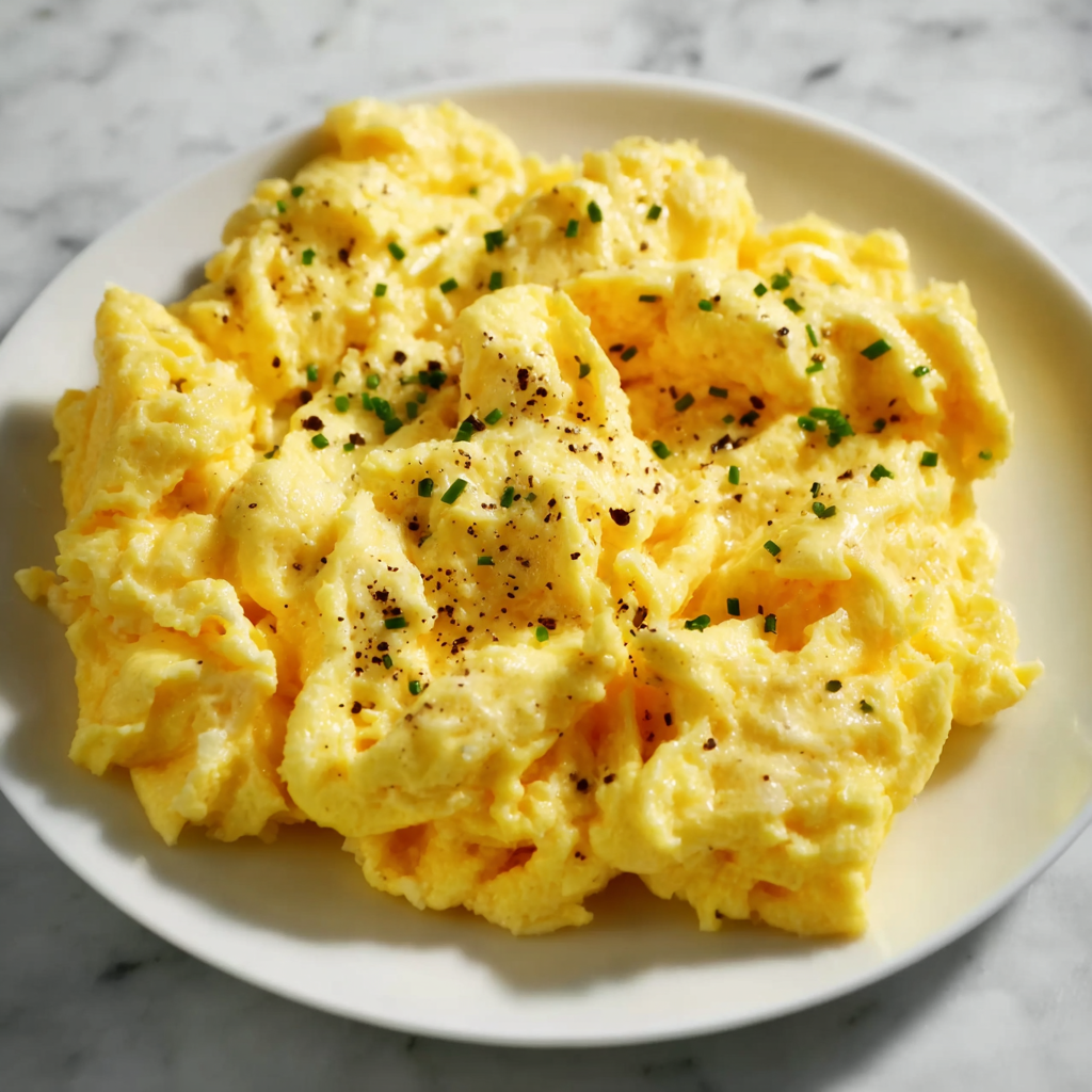 Summary: A masterclass in making fluffy, creamy scrambled eggs using low heat, butter, and a splash of heavy cream. Seasoned at the end for perfect texture.