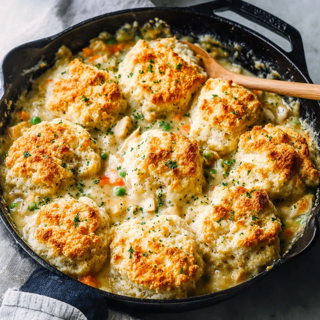 Can I make it in one pot?Yes. Use an oven-safe cast iron skillet for the filling, then drop the biscuits directly in and move the whole pan to the oven.