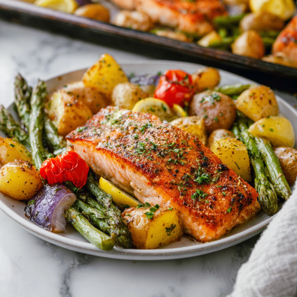 Sheet Pan Salmon and Potatoes with Veggies is the ultimate weekday warrior. It respects your time without compromising on nutrition or flavor. By mastering the simple science of staggered cooking times, you guarantee that every element on the tray—from the crispy starch to the delicate protein—hits the plate at the peak of perfection. It’s colorful, healthy, and best of all, leaves you with only one pan to scrub.